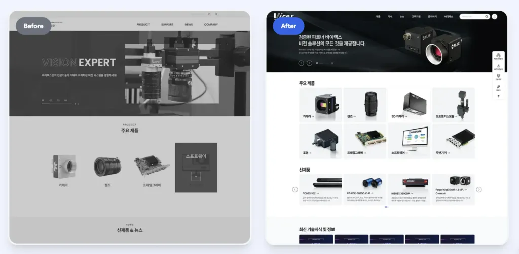 - 리뉴얼을 통해 기업 신뢰도 향상, 검색 노출 증가, 전환율 개선, 운영 효율화 등의 효과를 기대할 수 있습니다.